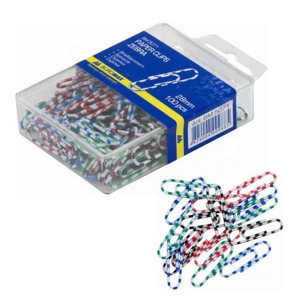 Наименование: Скрепки Buromax 28 мм, 100 шт., цветные "зебра", пластиковый контейнер